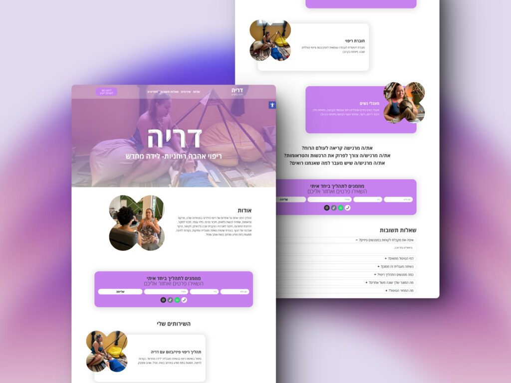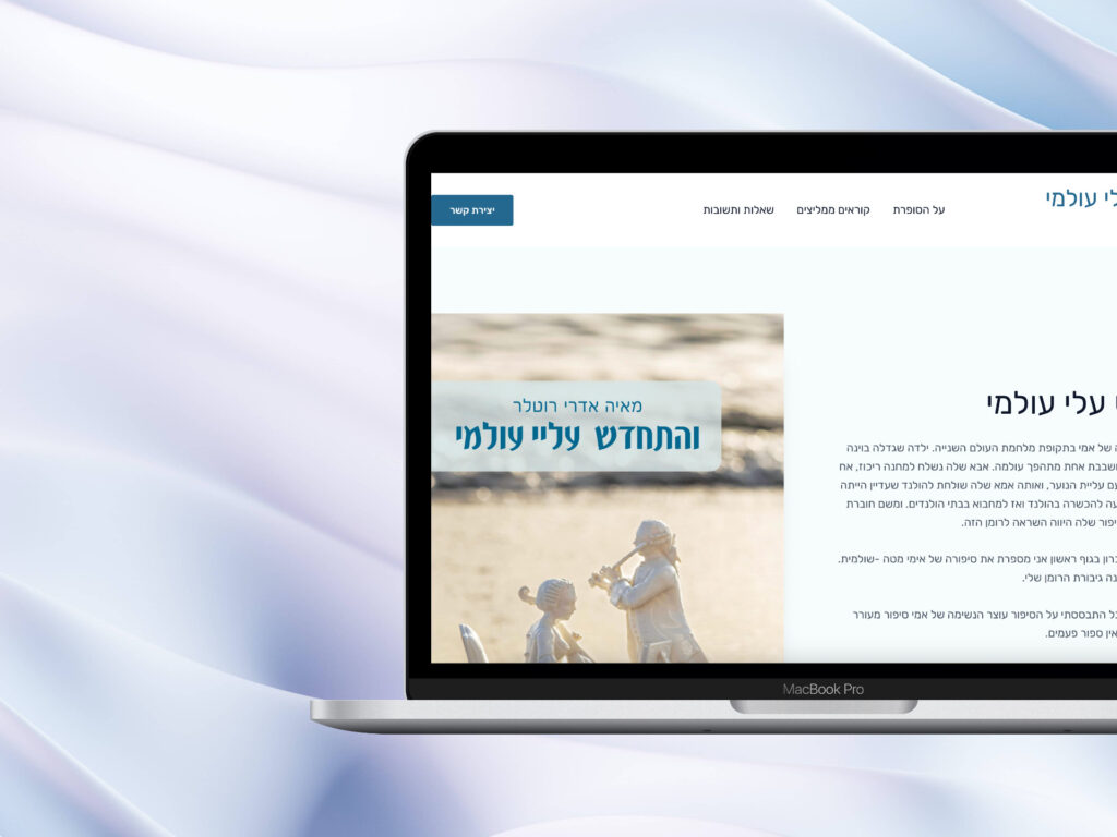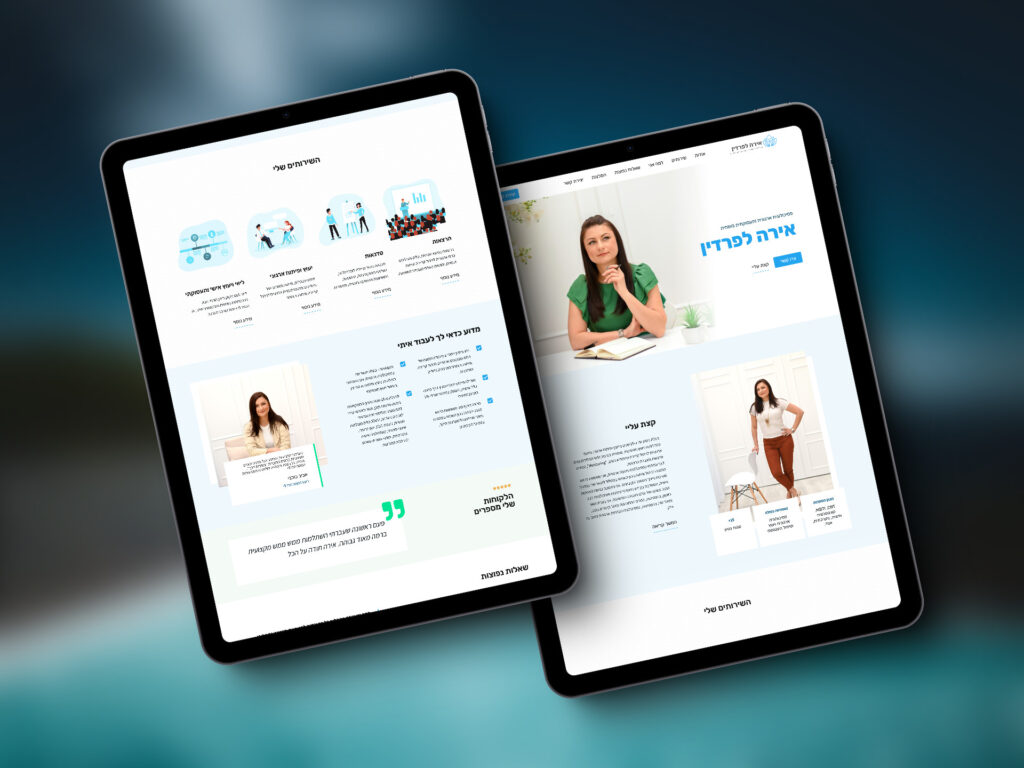 ״...האתר נראה מקצועי מאוד, מושך את העין ומעביר את המסר שאני רוצה להעביר. לאורך כל התהליך, מושיקו היה זמין אלי, ענה על כל השאלות שלי בסבלנות והיה קשוב לרצונות שלי. ״האתר הושלם בזמן שנקבע, ואני מאוד מרוצה מהתוצאה הסופית.״